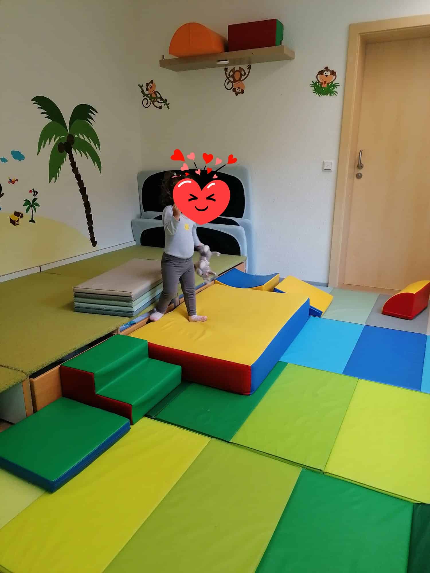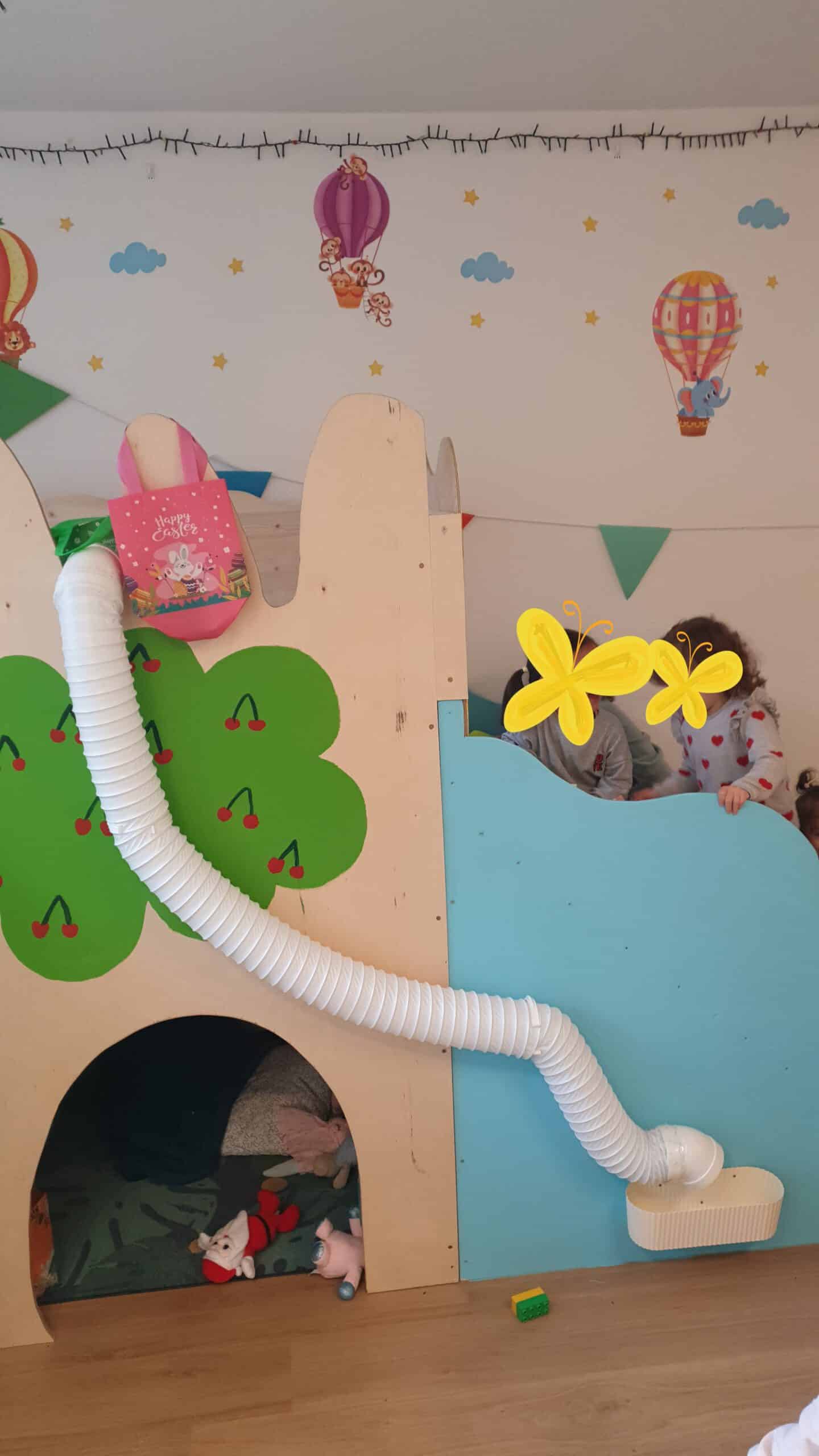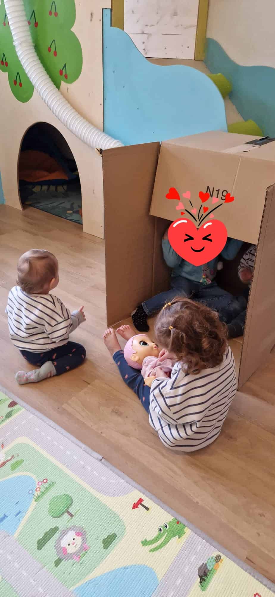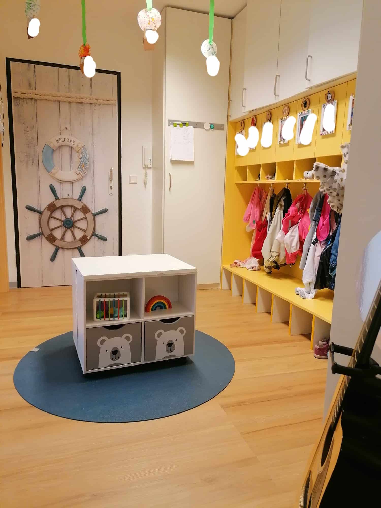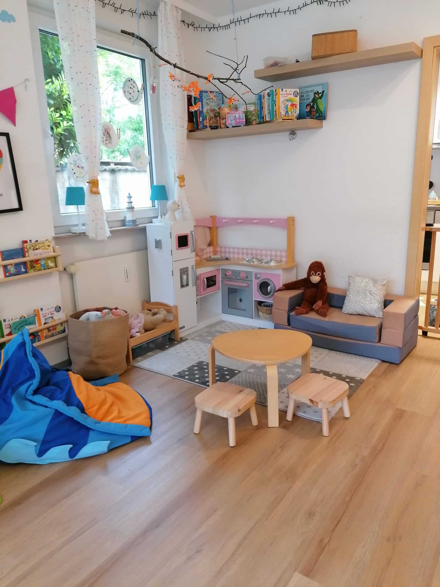 Unser kleinerer Betreuungsraum wird durch unsere geräumige Diele (Bespielbar, sobald die Tür zu ist und alle Kinder angekommen sind) erweitert, sodass die Kinder genug Platz zum Spielen, Lachen und auch für einen Rückzugsort haben.