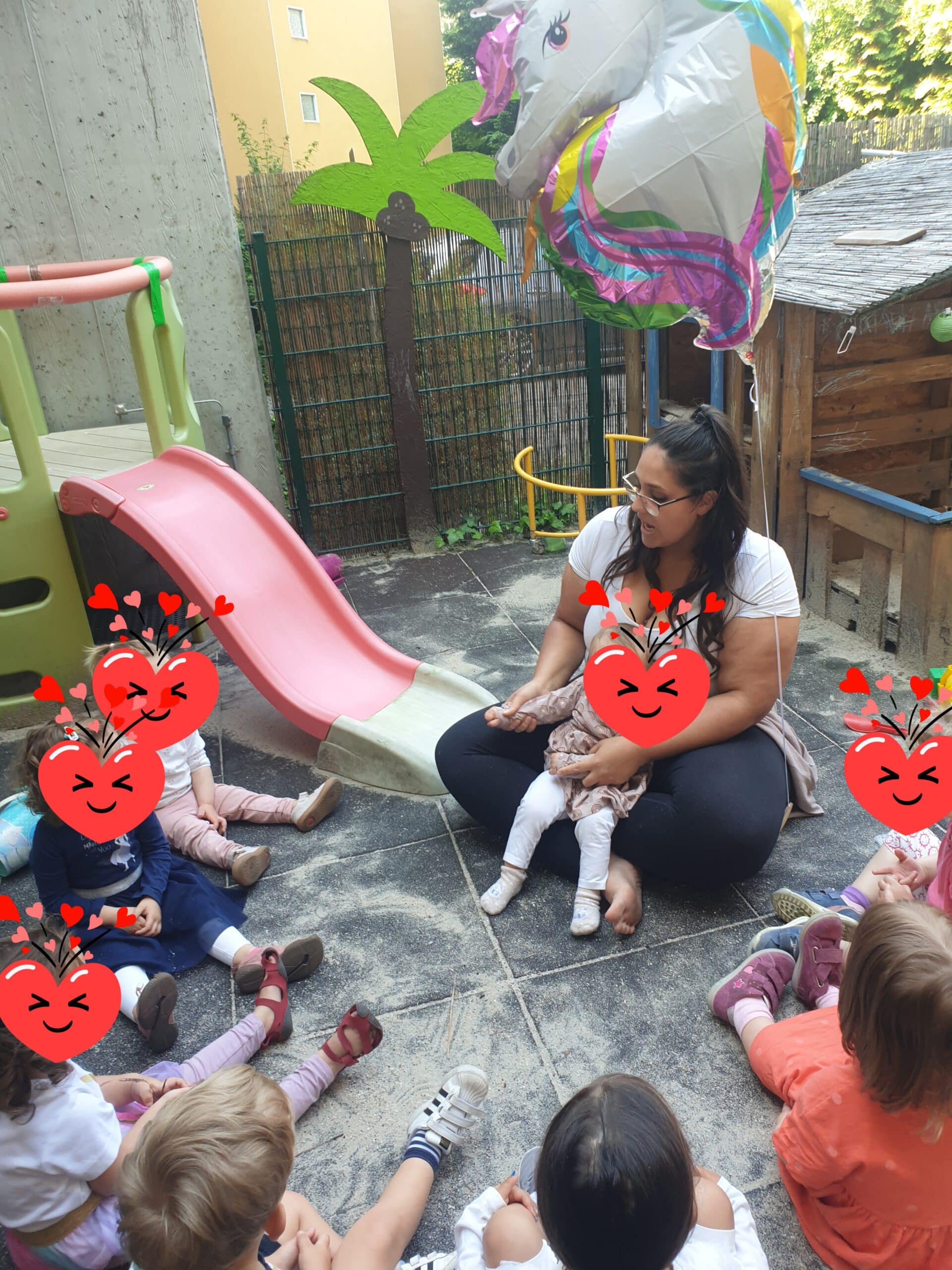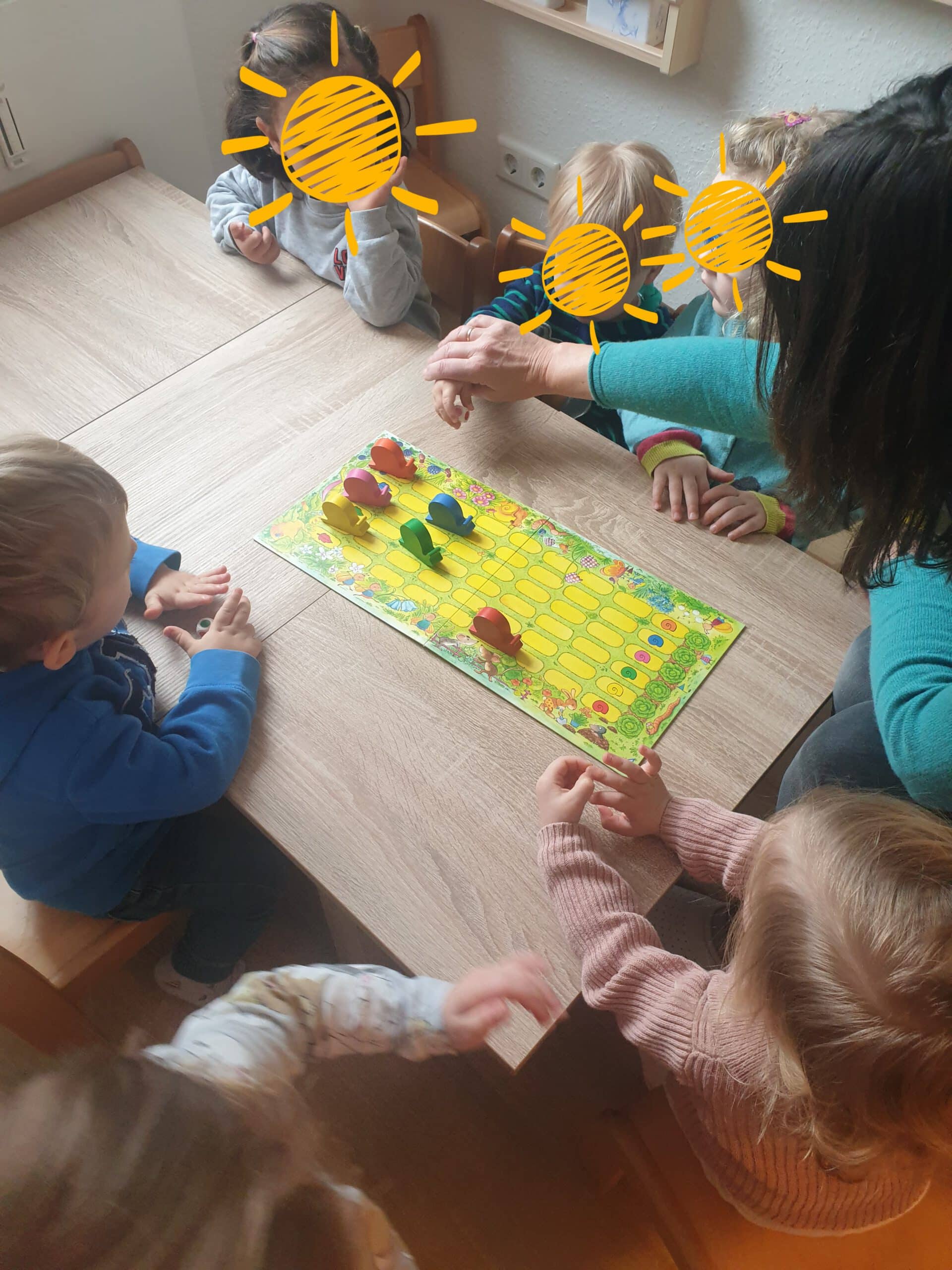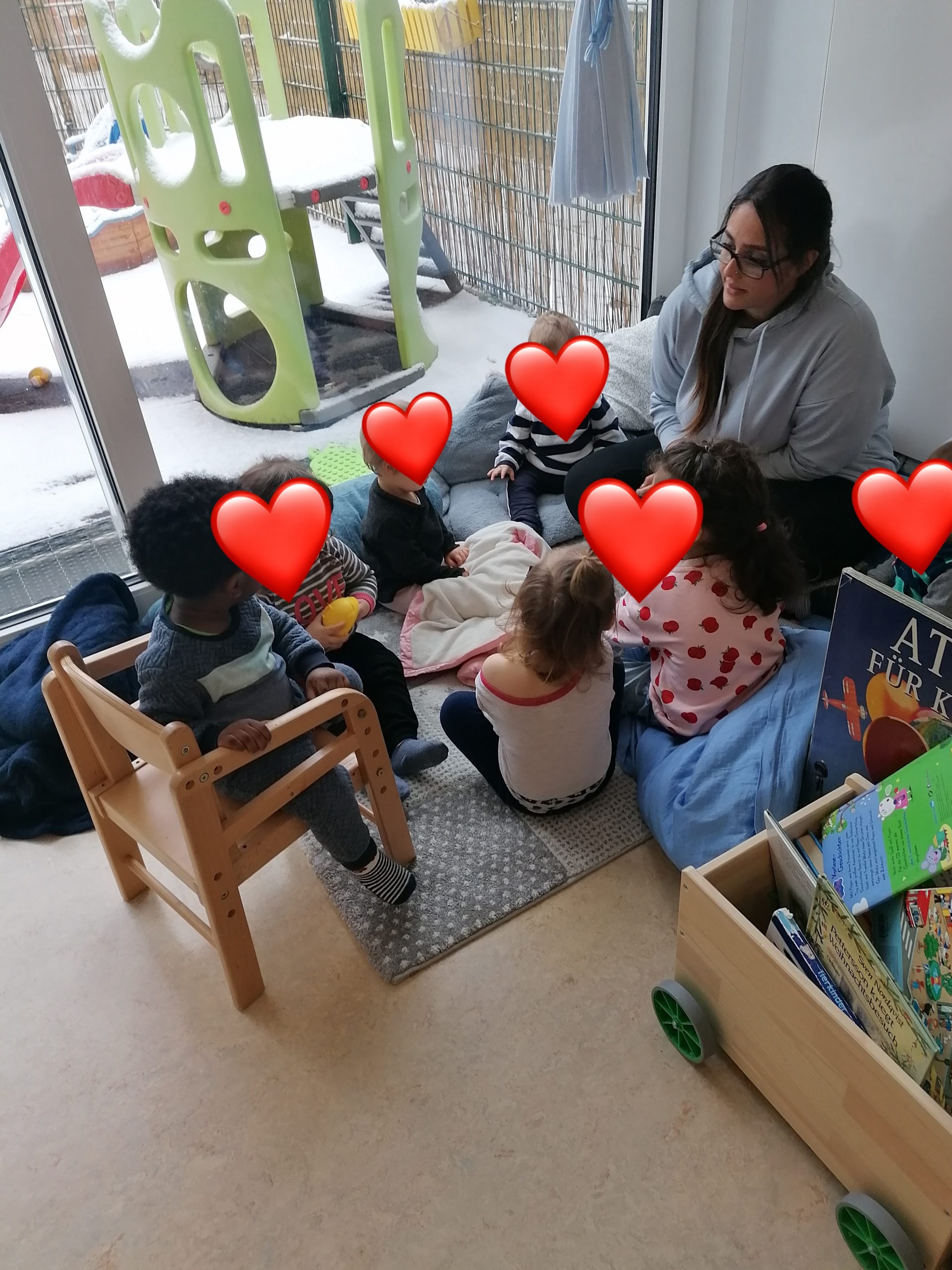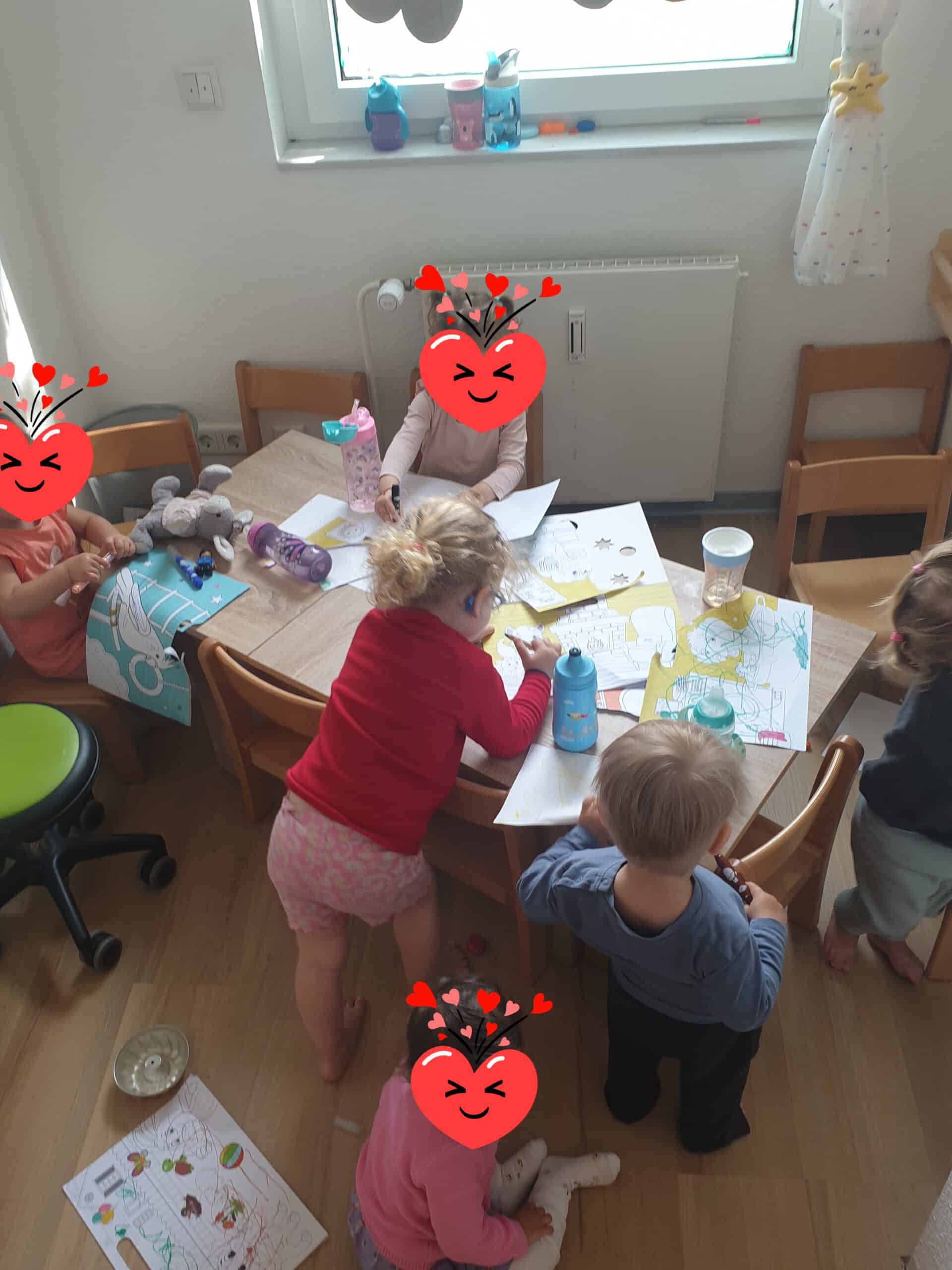 Diese zwei Betreuungsmöglichkeiten bieten uns ein wunderbares Miteinander, aber auch die pädagogische Arbeit in kleinen Gruppen. So hat jede Betreuungsperson die Möglichkeit, sich auch mit ihren fünf Betreuungskindern zurückziehen- und separate Aktivitäten und Impulse gestalten zu können.