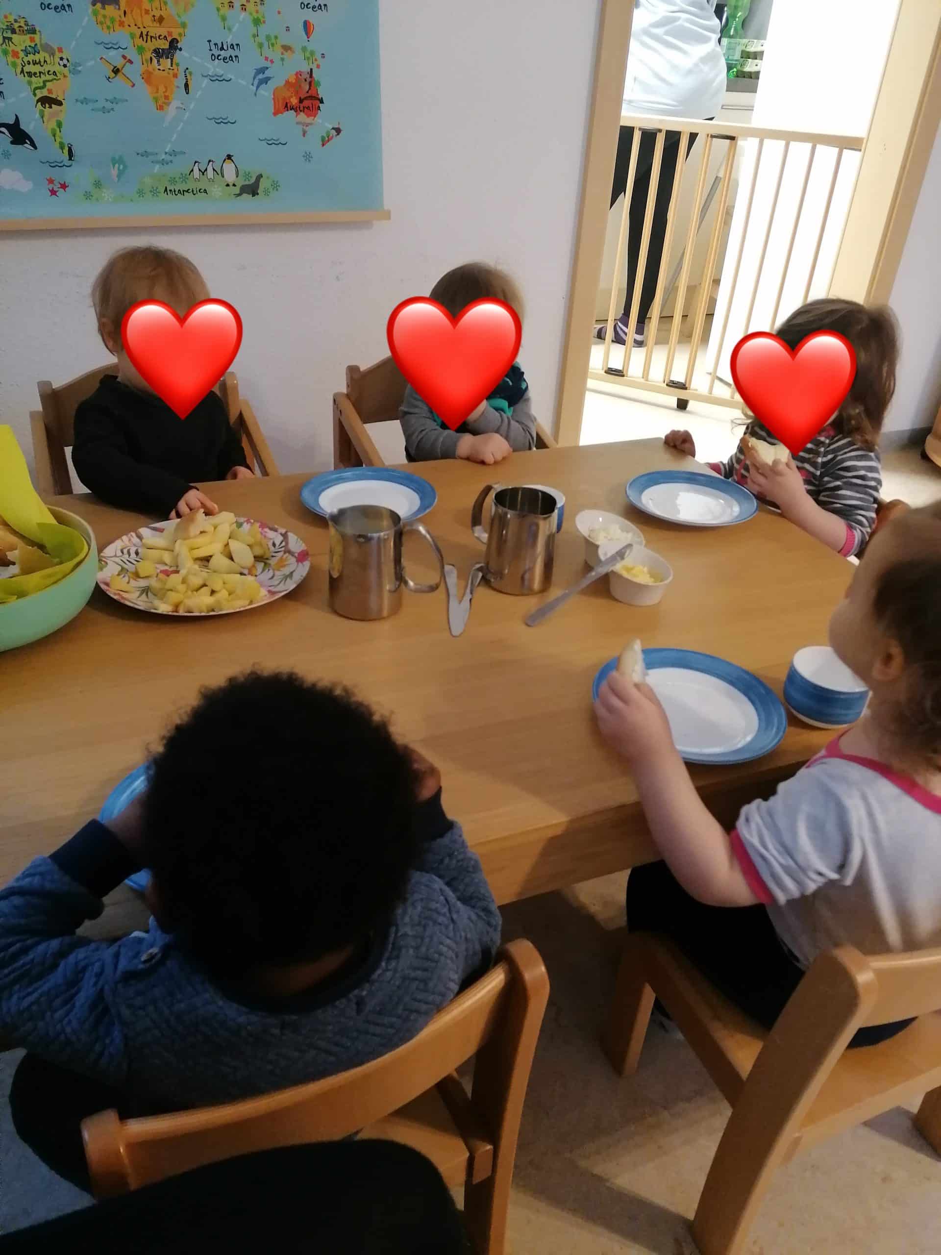 Nach dem Mittagsschlaf bekommen die Kinder noch einen Snack (Bsp: Brot, Obst etc.)